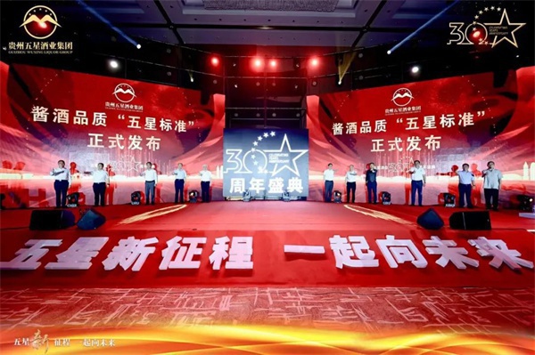在发展的过程中,五星酒业始终坚守着品质底线。在五星酒业的30周年庆典上,五星酒业发布了《酱酒品质五星标准》,进一步从严工艺、优化流程、完善标准,“五星标准”囊括了“产区、原粮、工艺、储存、勾调”全生命周期五大品质管控体系,构成一瓶好酱酒的五大维度。